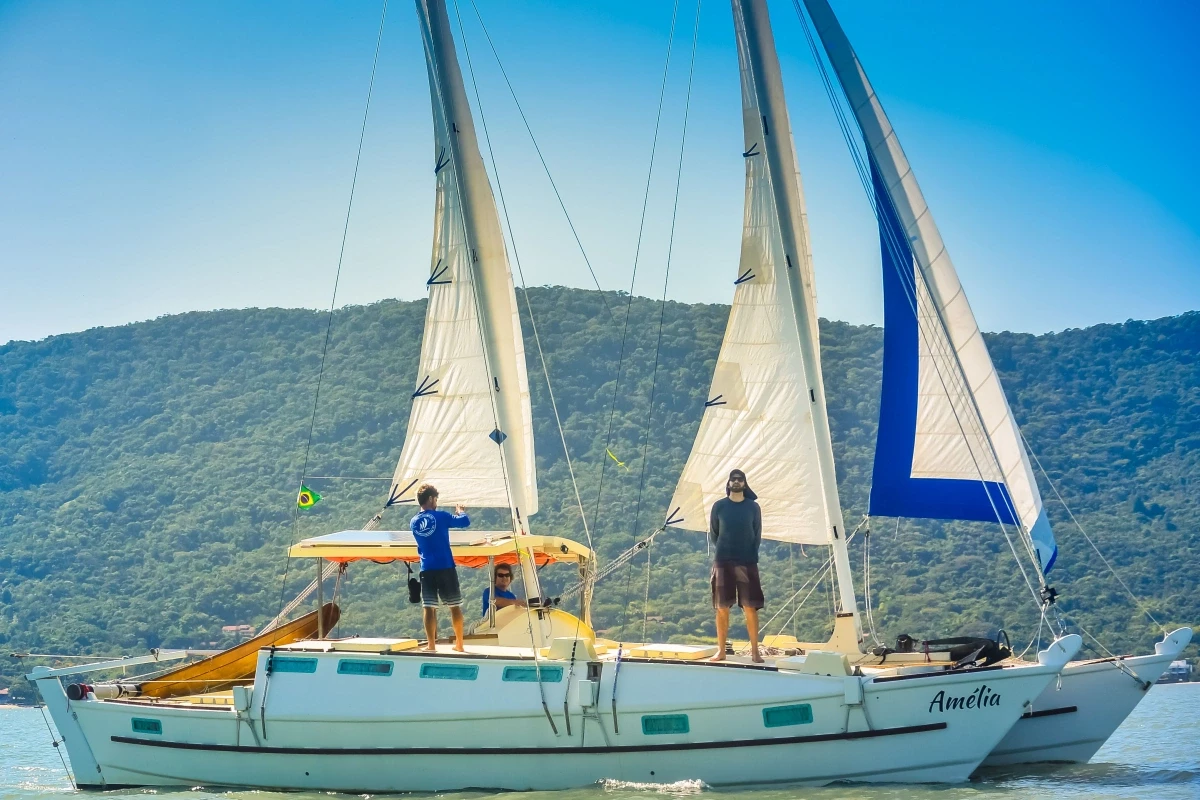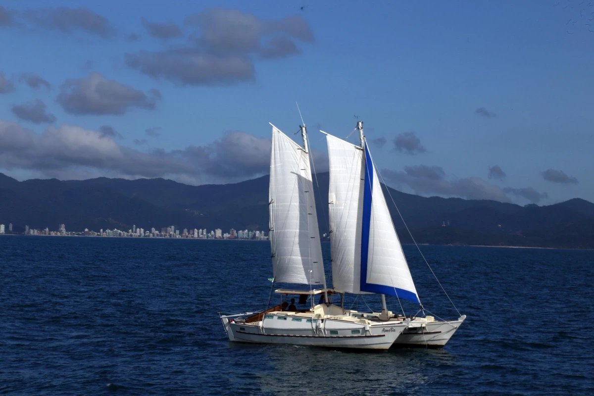 O Veleiro Catamaran Amelia foi o primeiro modelo deste tipo construído no Brasil, autêntica embarcação polinésia, muito confortável e seguro. Tenha uma imersão completa no mundo da vela, sinta como é morar num veleiro catamaran.