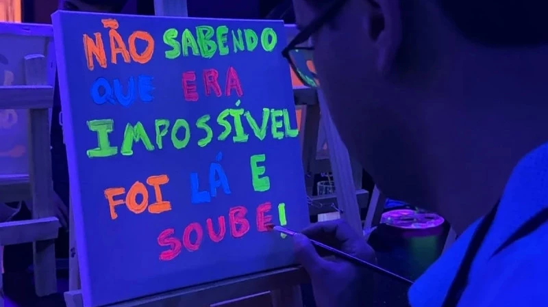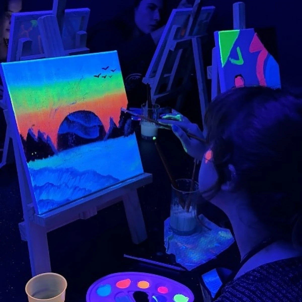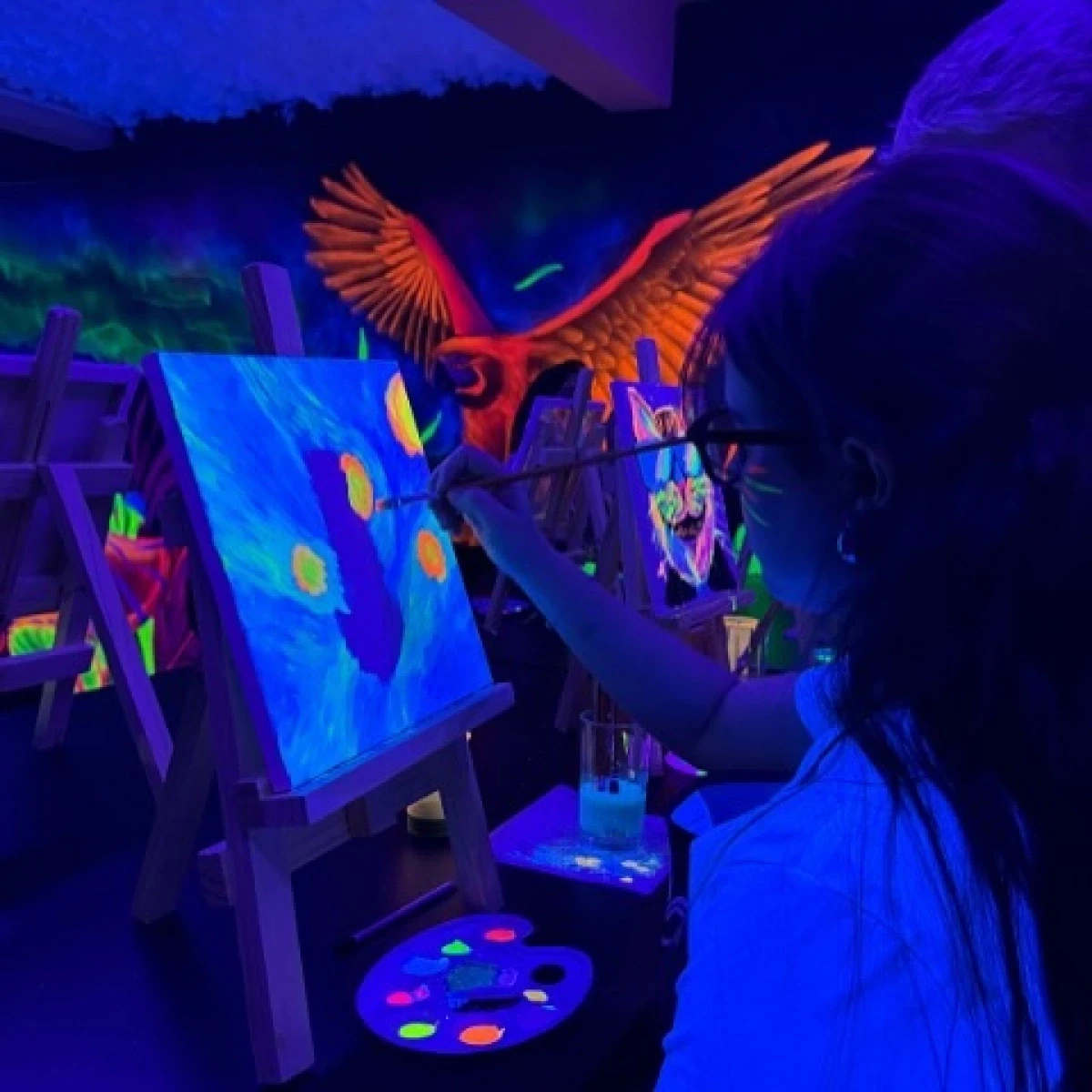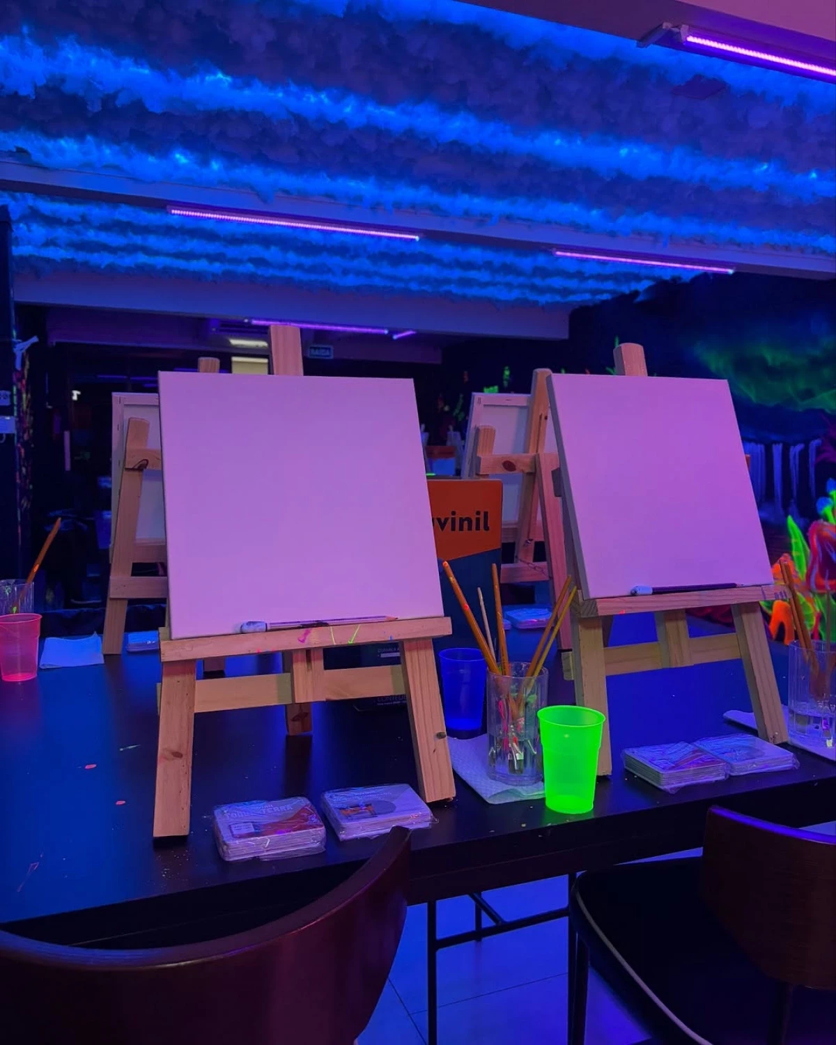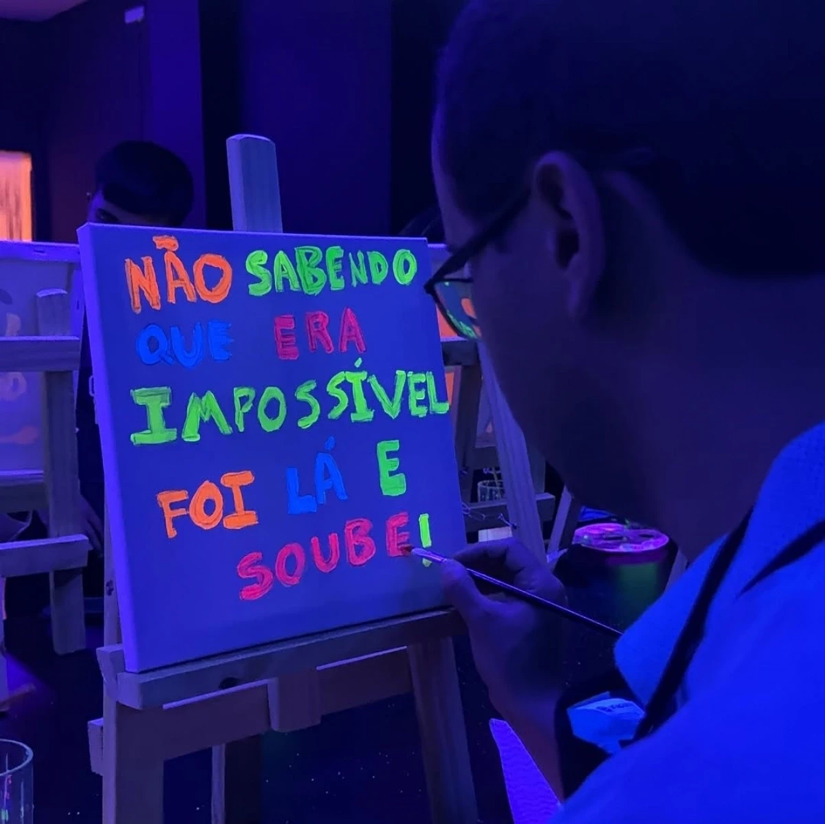 Na Faz Arte, a criatividade encontra a diversão — e a arte é para todos! Vivencie uma experiência única: pinte com tintas neon em um ambiente imersivo, com iluminação especial, música envolvente e vinho liberado. Não é preciso ter experiência ou talento com pincéis — aqui, o importante é se soltar, se divertir e deixar a imaginação fluir. Seja com amigos, em casal, com a família ou em uma comemoração especial, a Faz Arte é o lugar ideal para relaxar, socializar e criar sua própria obra de arte, que você leva para casa ao final.