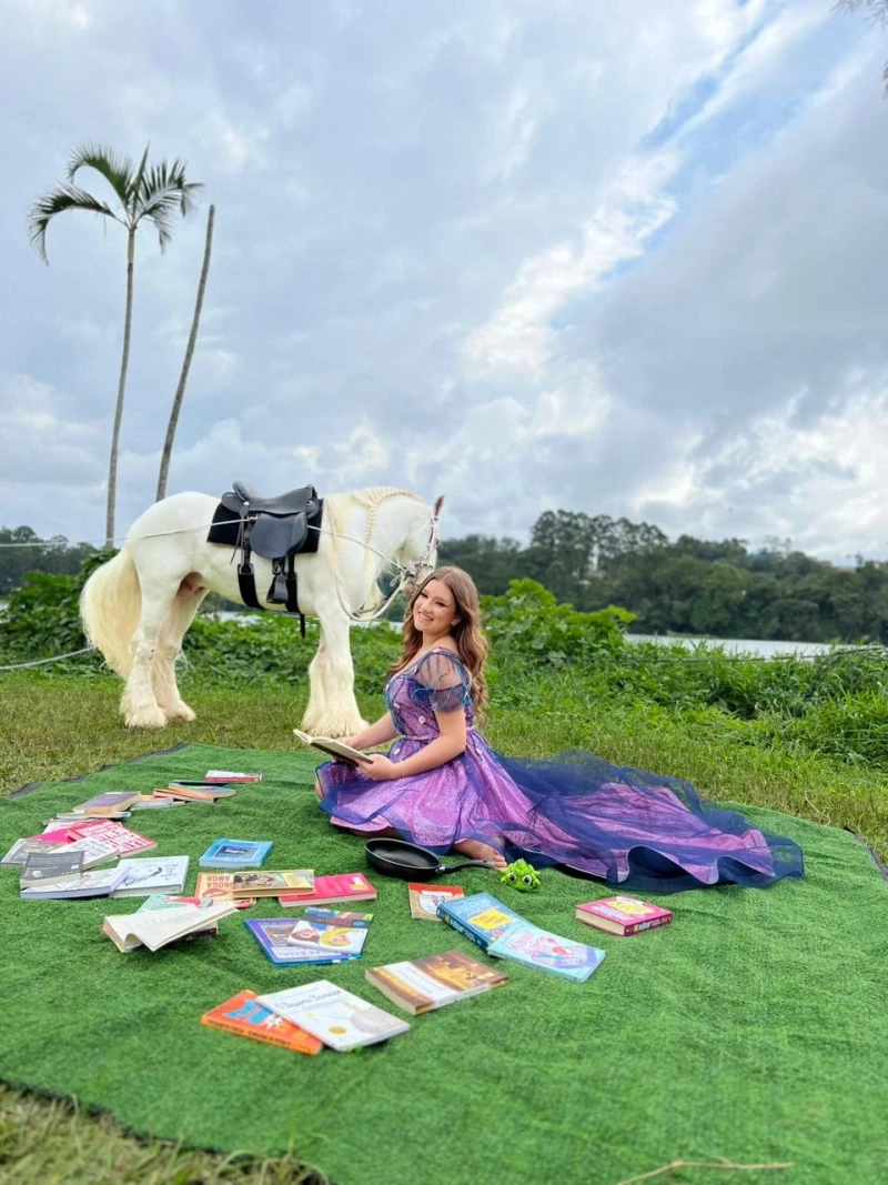 - Espaço para sessão de fotos com Cavalos soltos e montada (escolher 01 para montar), nas áreas externas em frente à represa e ruas verdes, fotos no nosso espaço com arco de flores, céu de sombrinhas, todo área externa do espaço, represa com barco e todas as carruagens dentro do salão de carruagens