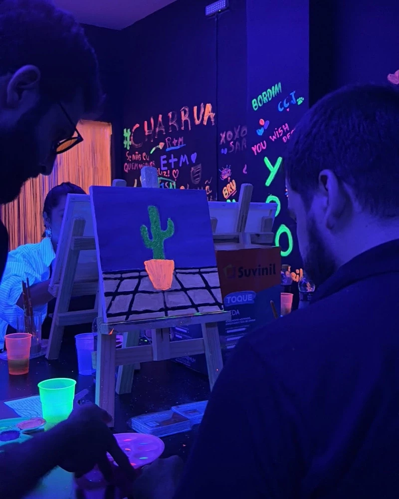 A pessoa presenteada não precisa saber pintar — aqui, a arte é para todos! Basta vir, se soltar, criar e se divertir. E no final? Leva sua própria obra de arte para casa.