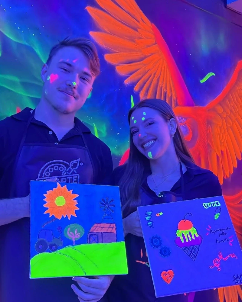 A pessoa presenteada não precisa saber pintar — aqui, a arte é para todos! Basta vir, se soltar, criar e se divertir. E no final? Leva sua própria obra de arte para casa.